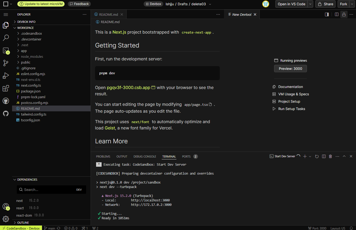 Codesandbox 로 Next.js 실행하기
