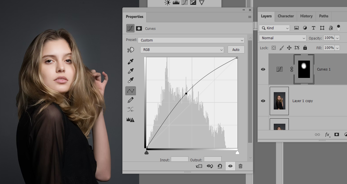 이미지 특정 부분 밝음 어두움을 커브로 조절 합니다.